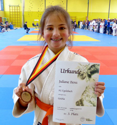 Die beiden SGE-U11er Florian Wunderlich (16 Punkte) und Lennard Fuchs (18 Punkte) waren die Speerspitze des Egelsbacher Jungs und freuten sich über glänzendes Gold. Den Vogel schoß Juliane Benz ab! Sie holte 16 Punkte in ihren Wettkämpfen in der U11 und nochmals 18 Punkte in ihren U13er Wettkämfen. Mit zwei goldenen Medaillen kam sie mehr als zufrieden nach Hause und bestätigte so nochmals den aktuellen Vereinsbestenplatz in der SG Egelsbach - Abteilung Judo.