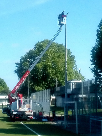 Am 26. Mai 2020 hat in der Früh die Umrüstung der Beleuchtung auf dem Kunstrasenfeld und Nebenplatz des SGE Sportplatzes auf moderne LED-Technologie begonnen. In einer der größten Investitionen unseres Vereins in den letzten Jahren stehen Wirtschaftlichkeit, Umweltschutz, Insektenschutz und insbesondere Spielersicherheit im Vordergrund.